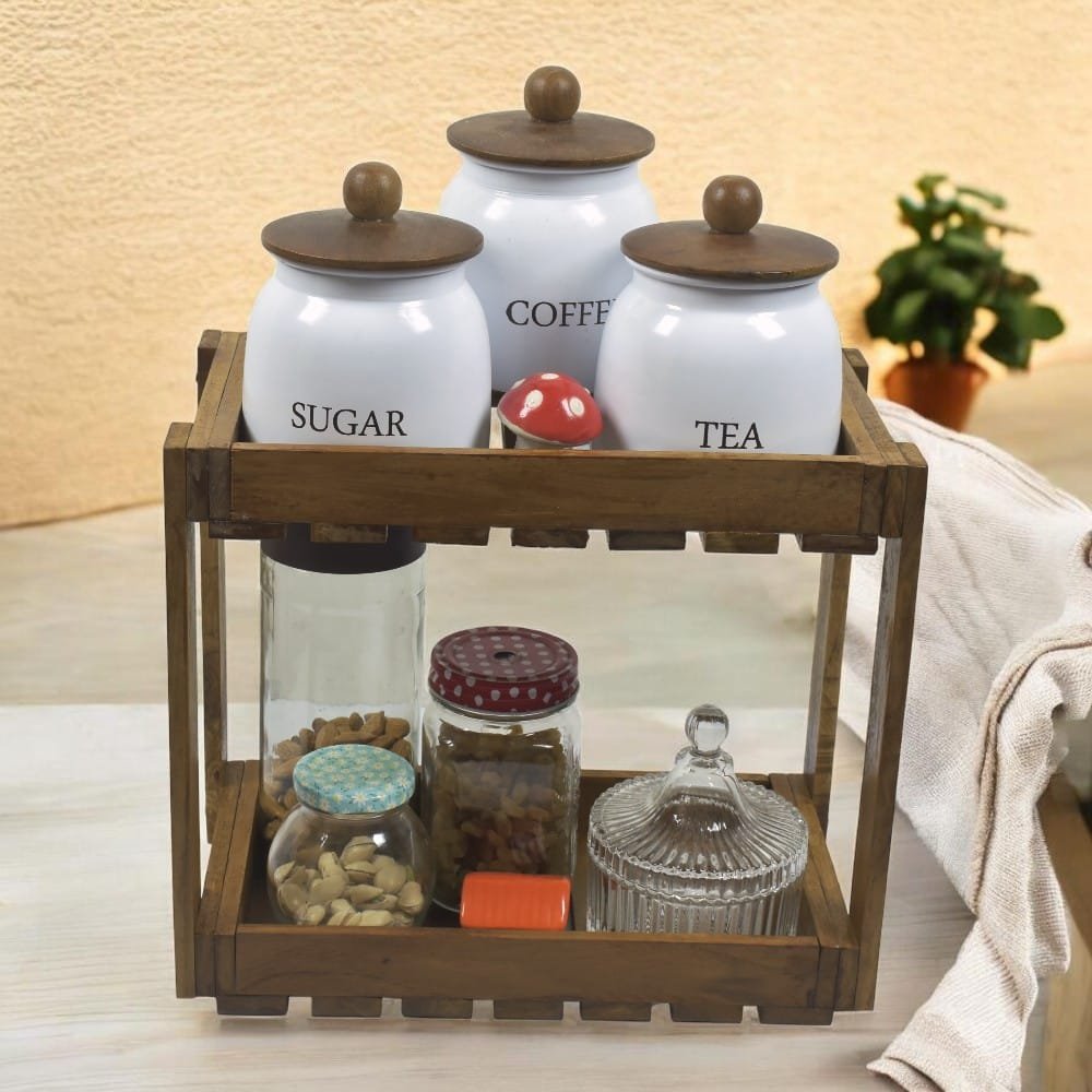 2 Tier Wooden Kitchen Rack is a smart and stylish solution for organizing your kitchen essentials in a compact space. Crafted from premium teak wood with a glossy finish, this rack is designed to elevate your kitchen décor while keeping jars, spices, and condiments neatly arranged. Its sturdy construction and modern look make it ideal for Indian homes seeking both functionality and elegance.
