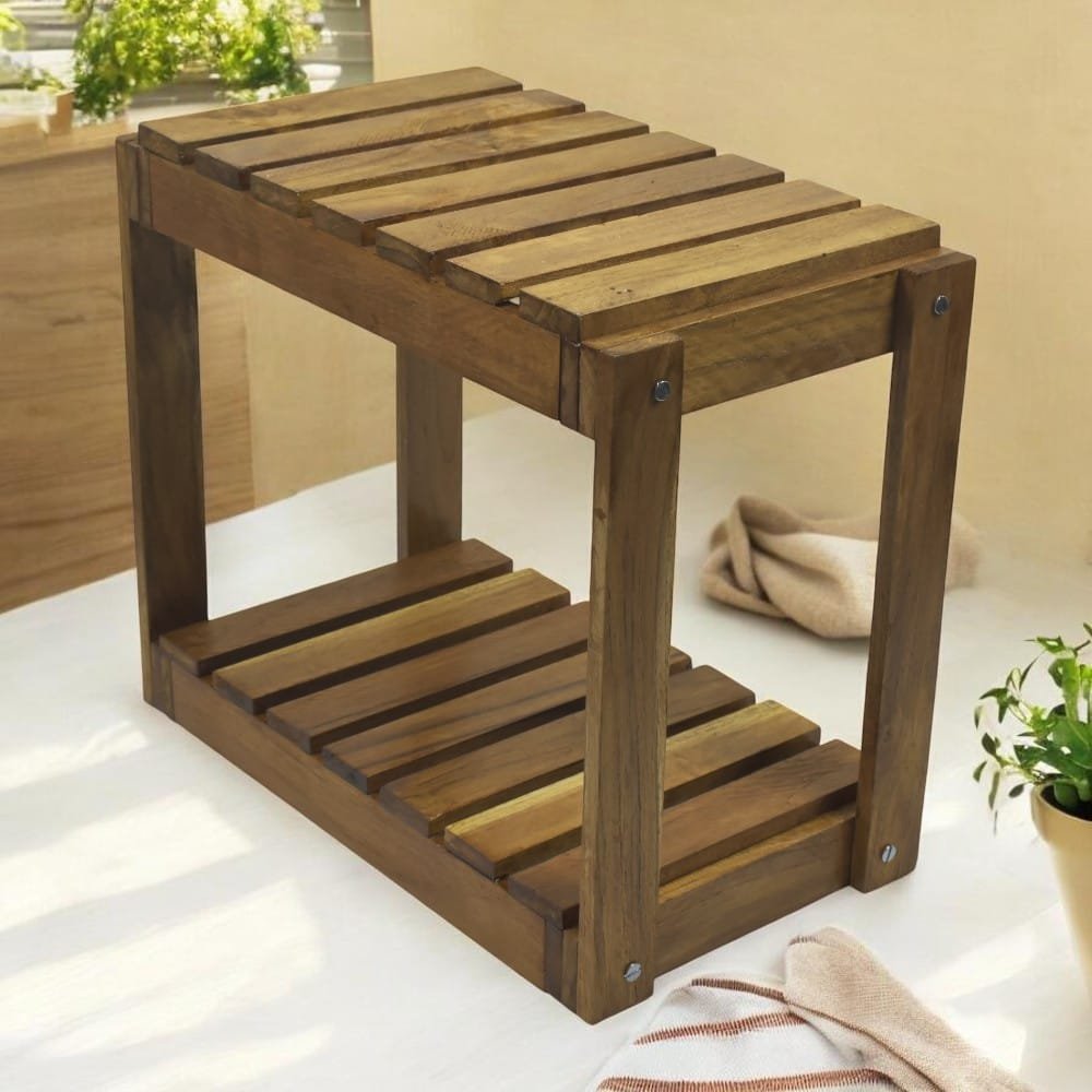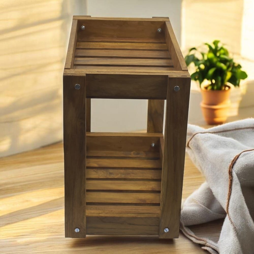 The 2 Tier Wooden Kitchen Rack is made from high-quality teak wood known for durability, termite resistance, and long life.