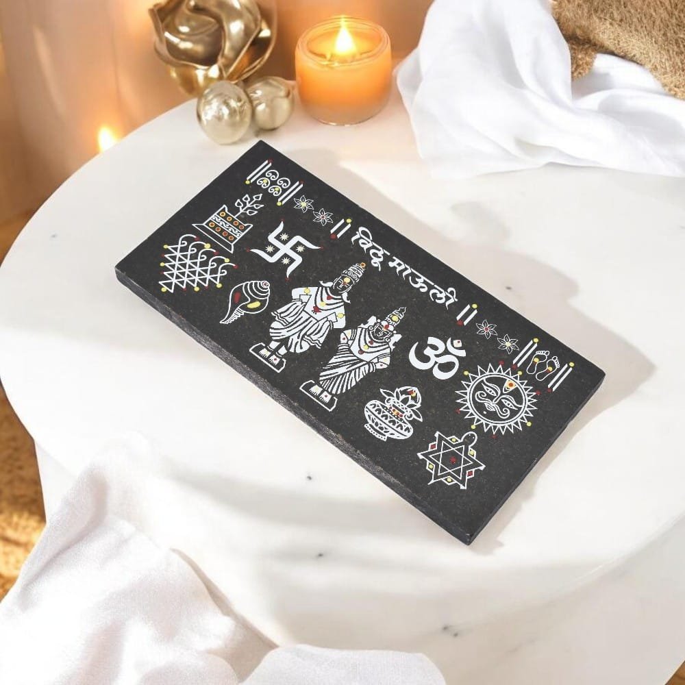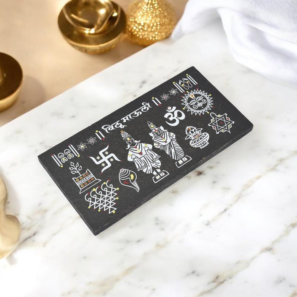 This is a spiritual décor piece crafted on premium granite, thoughtfully designed for home entrances, pooja rooms, and other sacred spaces. With its compact 12 × 6 inch size, it adds a touch of elegance without occupying much space, making it easy to place in a variety of settings while maintaining a refined and auspicious presence.